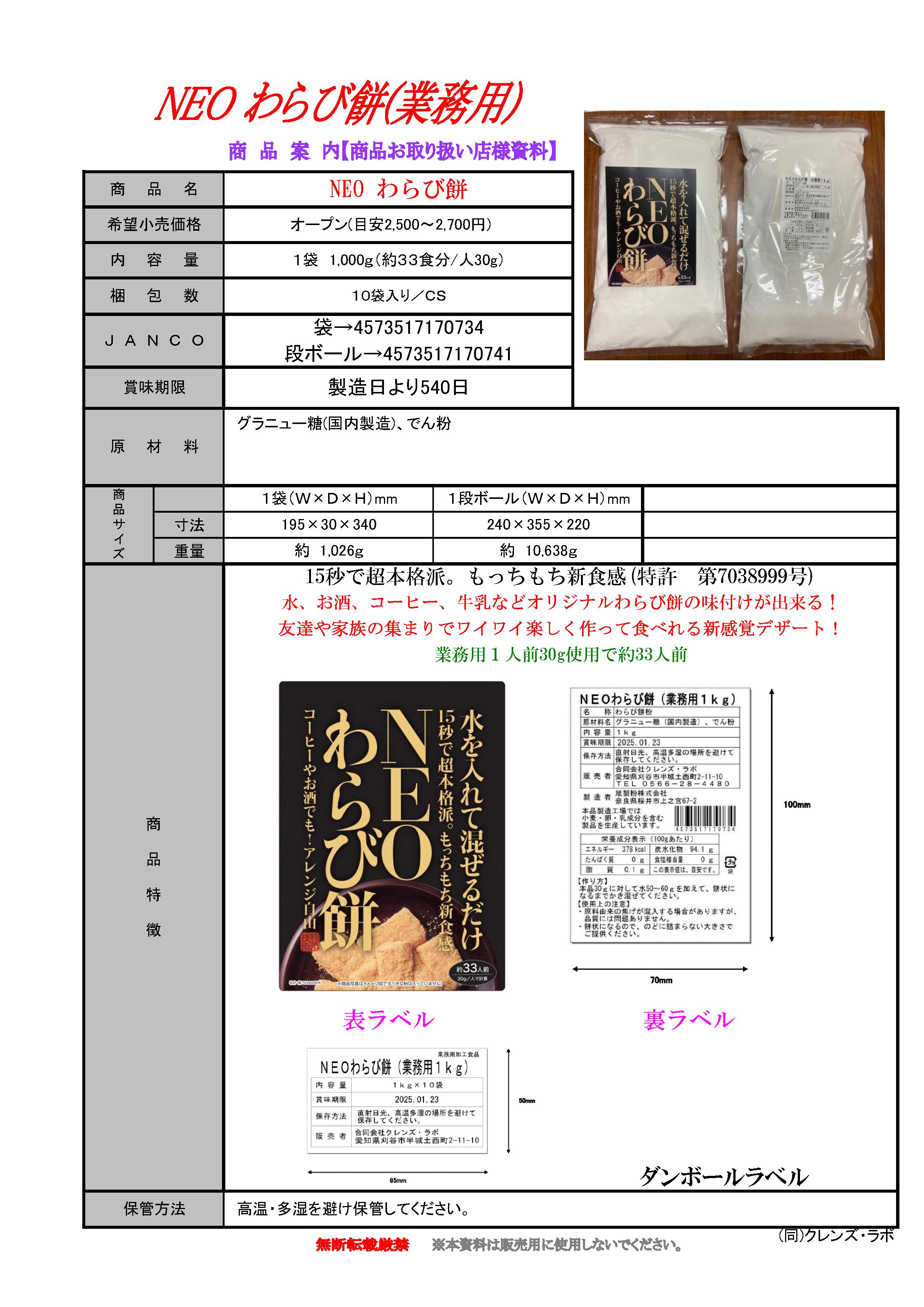 NEOわらび餅(業務用) 1Kg×10