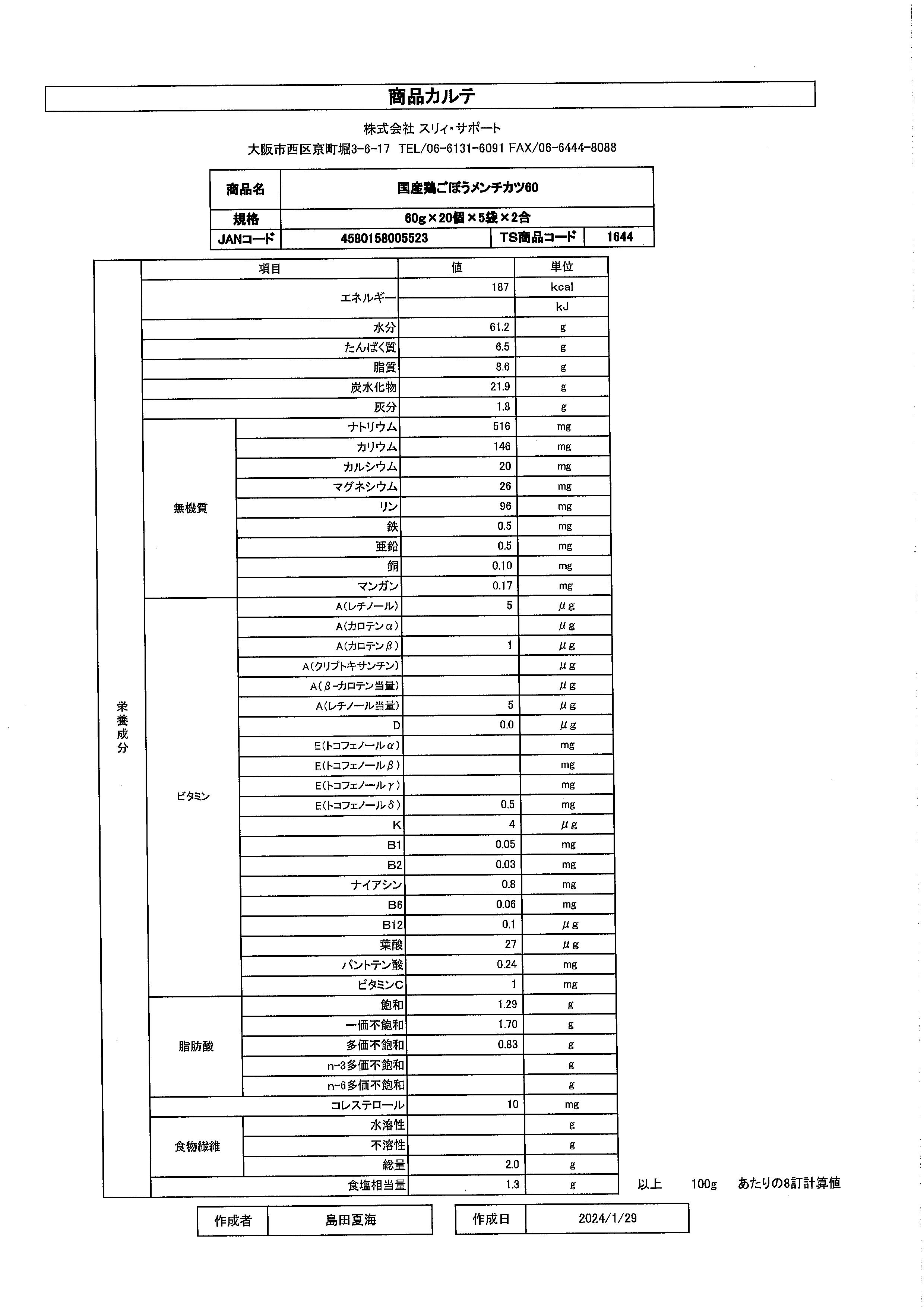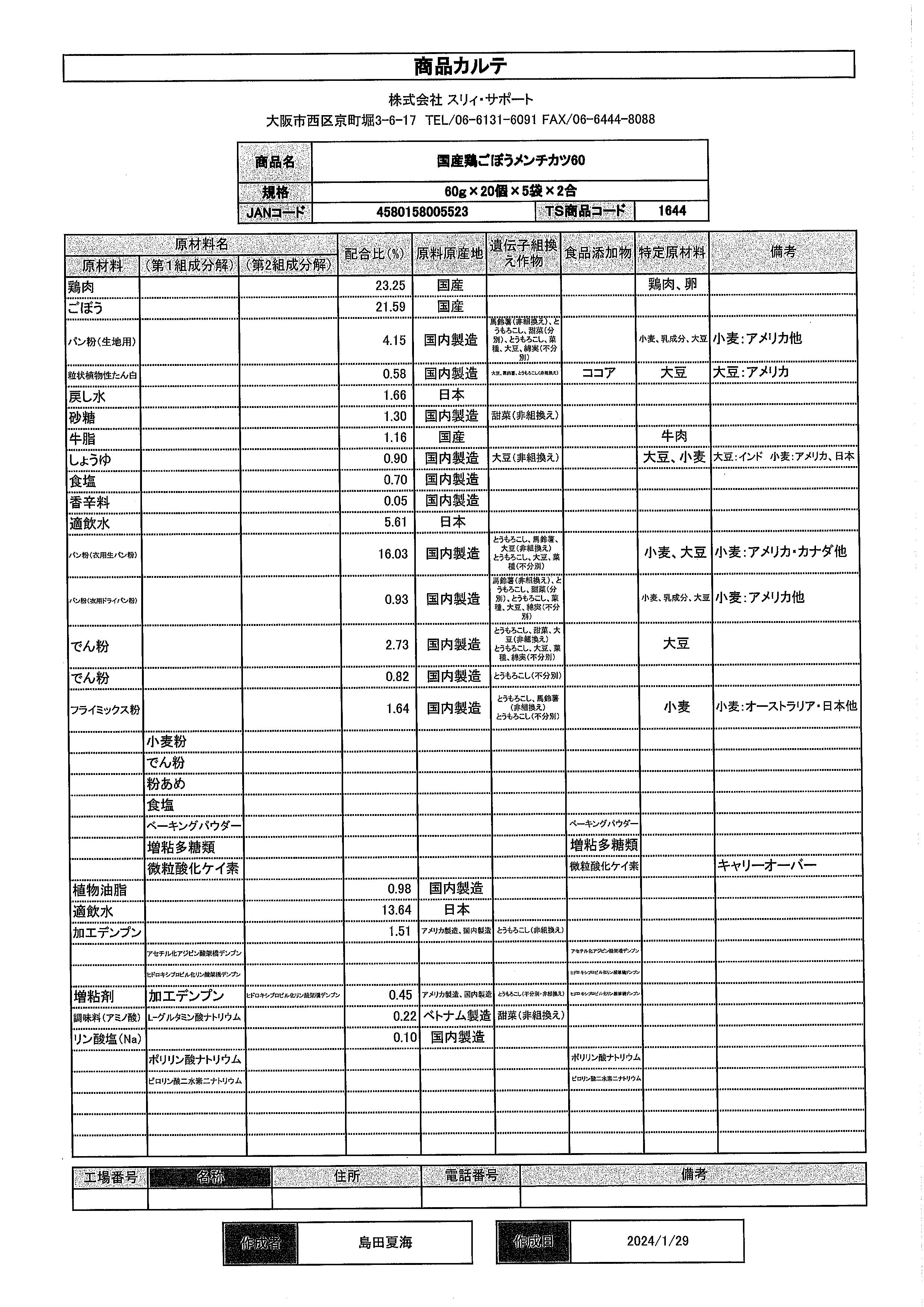 国産鶏ごぼうメンチカツ60 60g×20個×10