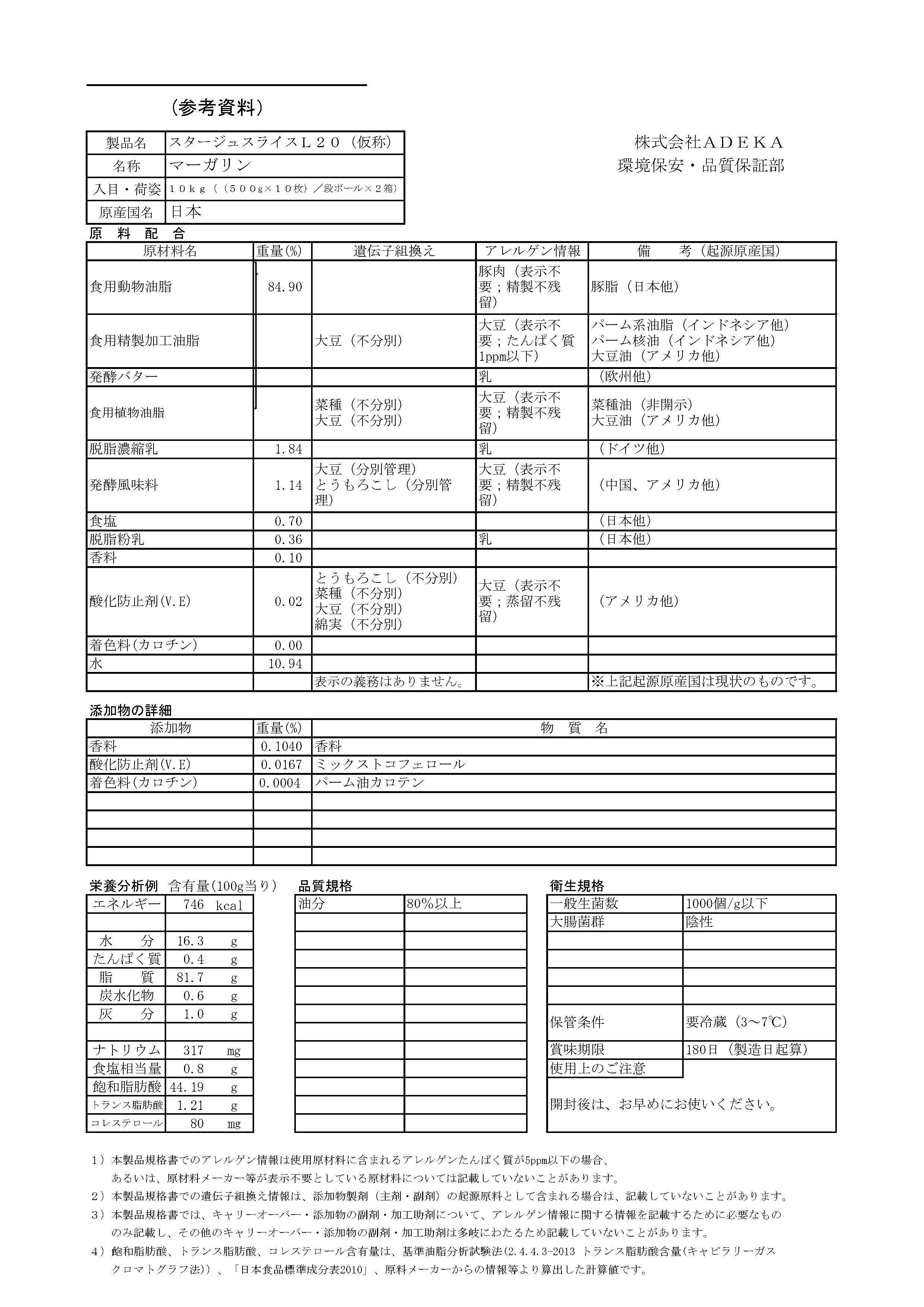 ADEKA スタージュスライスL20 500g×10
