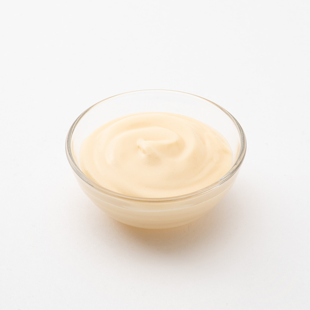 酸味を抑え、卵黄のコクをしっかりと効かせた厚みのある味わいで、幅広い用途に使えるマヨネーズタイプです。耐熱性があり、焼成後もきれいに焼き残ります。