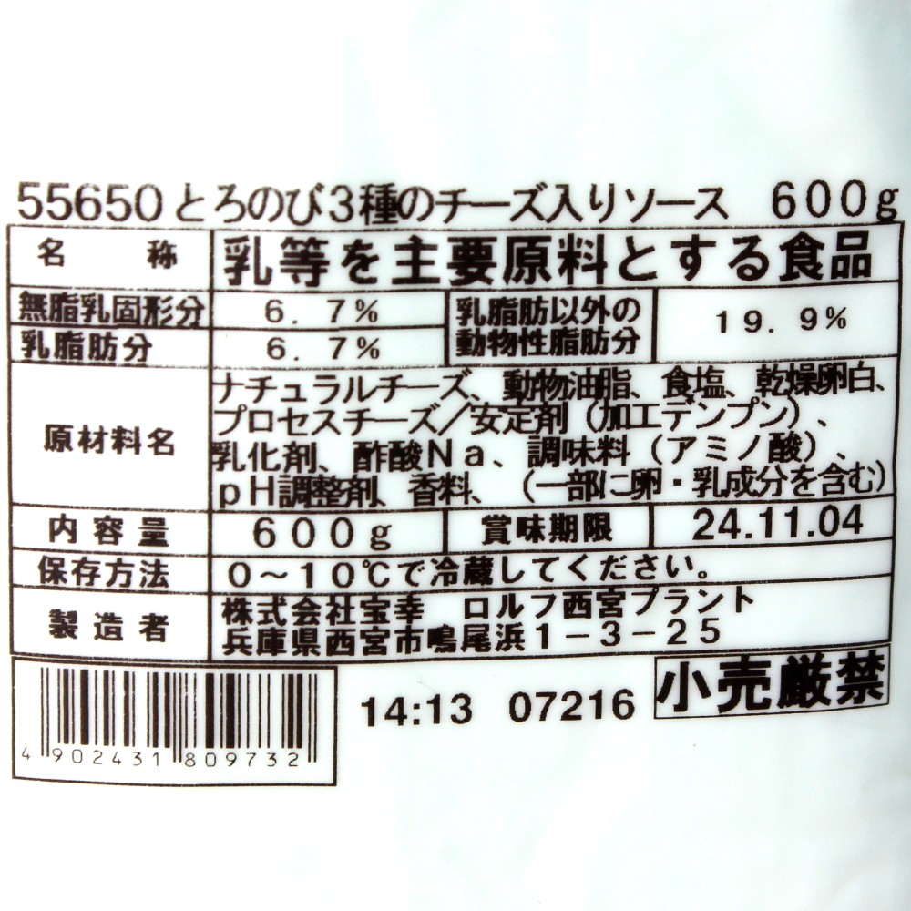 チェダーチーズ、ゴーダチーズ、モッツァレラチーズを配合した、とろ~りと伸びる、糸ひき性のあるチーズソースです。