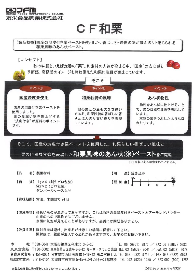 国産の渋皮付き栗ペーストを使用した、香ばしさと渋皮の味がほんのりと感じられる和栗風味のあん状ペーストです。