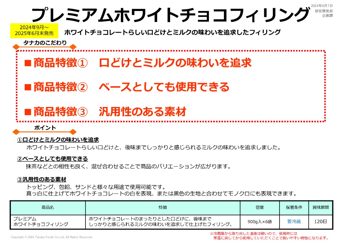 田中 ホワイトチョコフィリング 900g×6