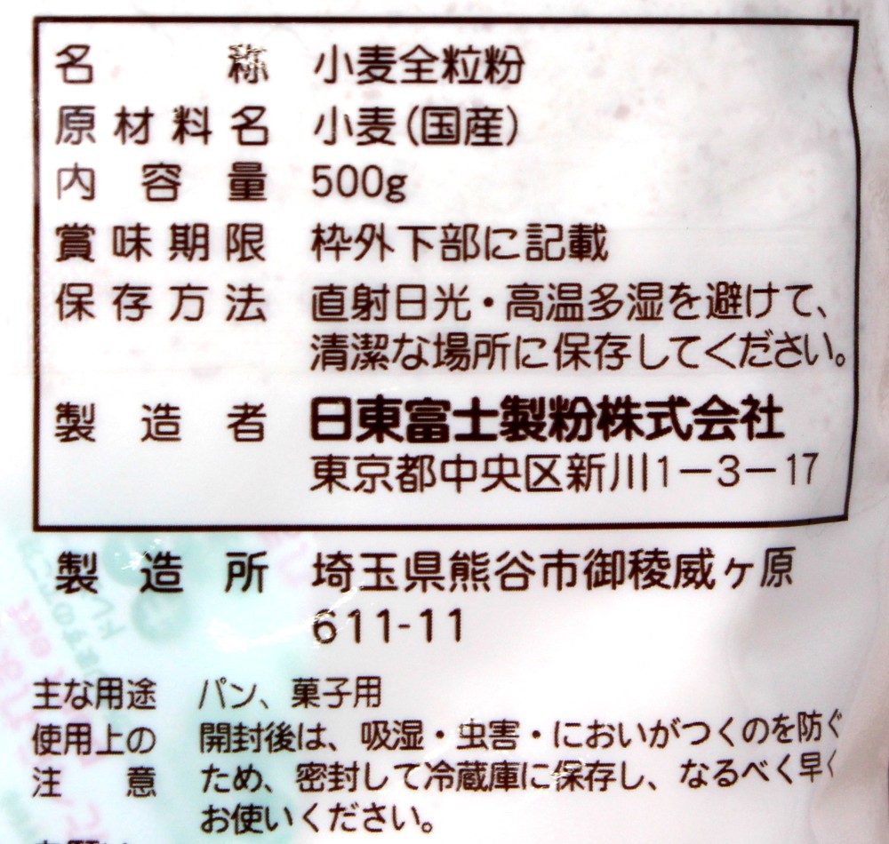 日東富士 内麦石臼挽 全粒粉 500g