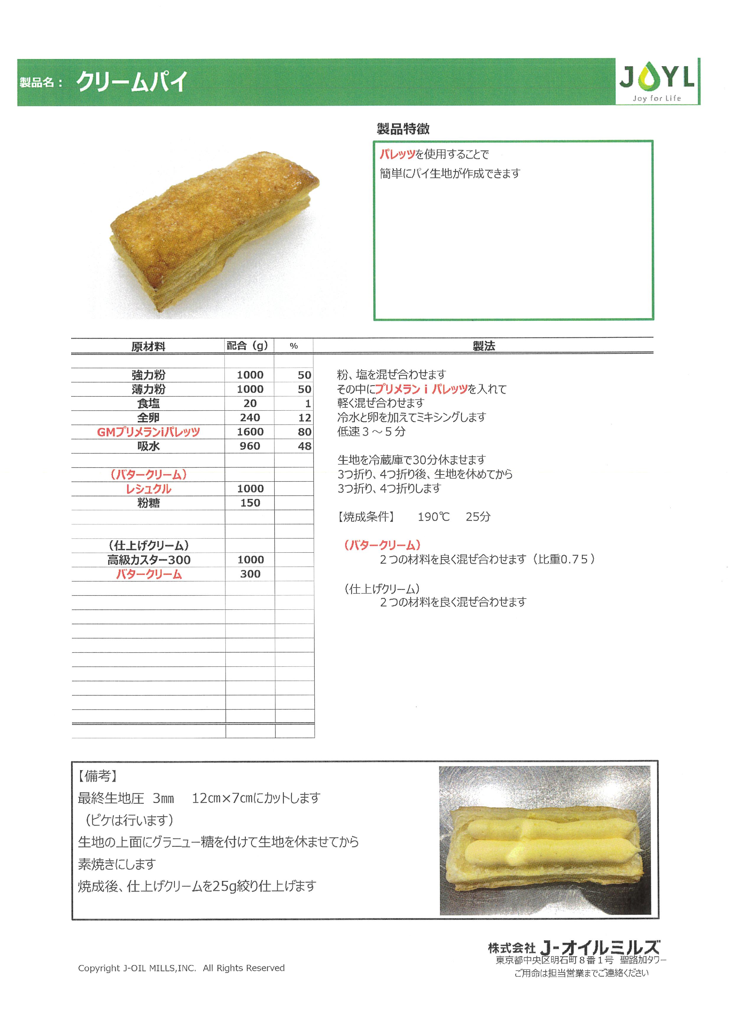 油脂分散性に優れ、ペストリー特有の複雑な製造工程を簡略化し、折りパイ同様の豊かなボリュームと整った内層のパイ製品を作ります。