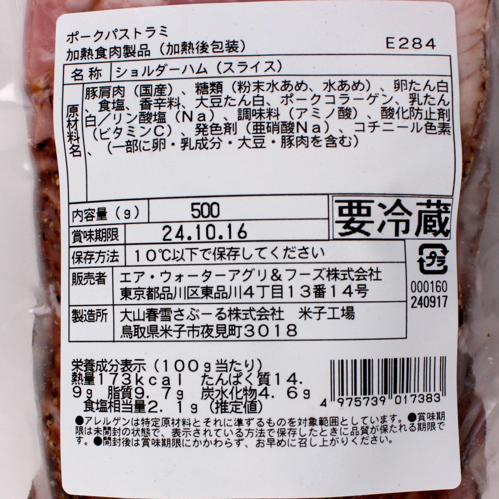 大山ハムのパストラミポークです。他のメーカーの物とおいしさが違います。