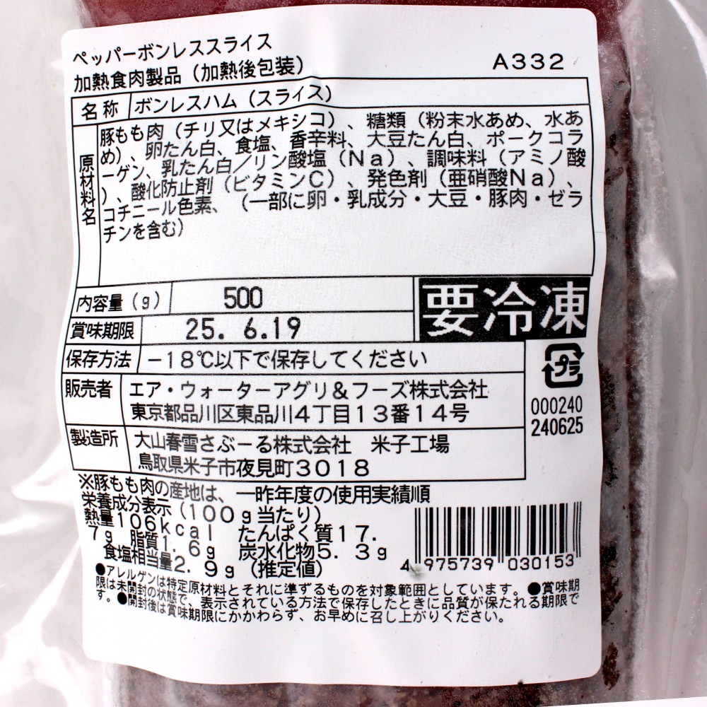 丸型ボンレスハムにブラックペッパーをまぶしています。