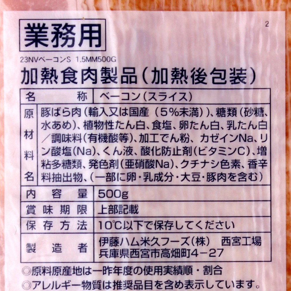伊藤 NVベーコンスライス<1.5mm薄> 500g