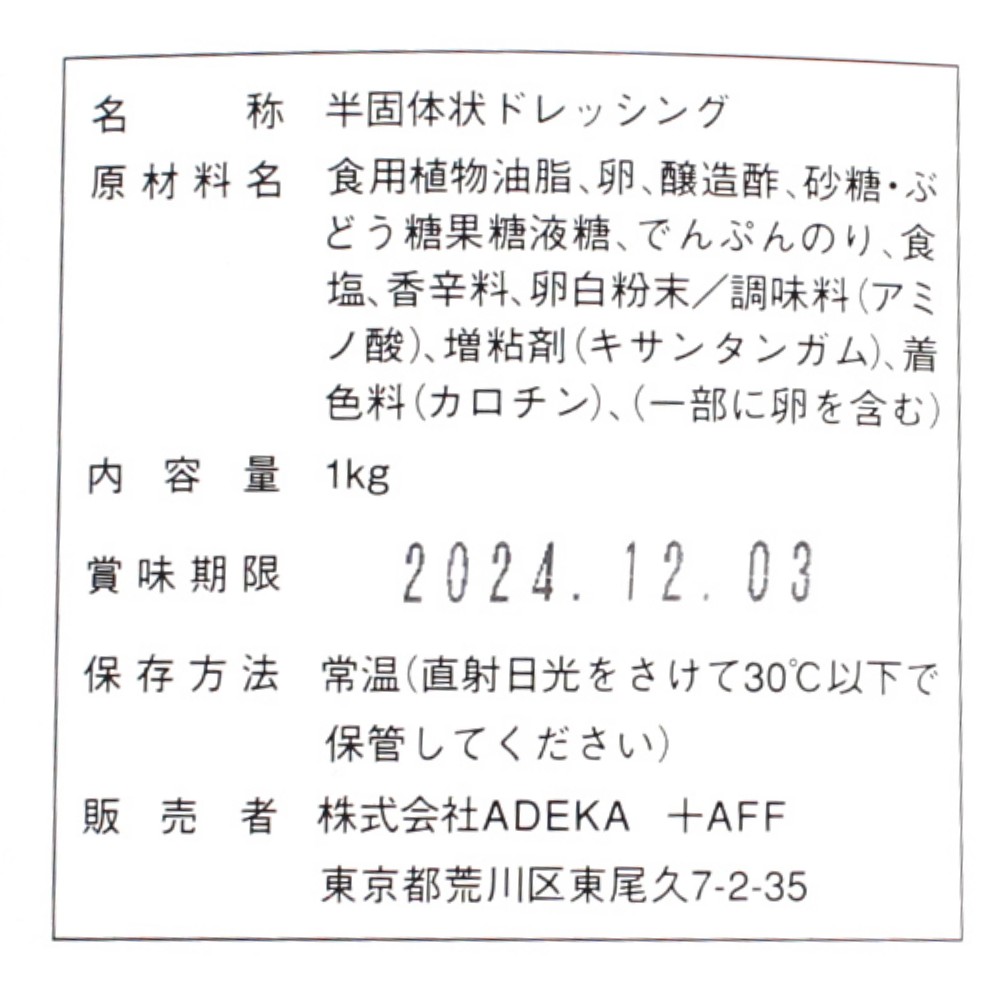ADEKA リス ベーカリーマヨネーズR 1Kg