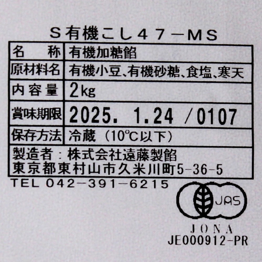 無農薬の認定農場で栽培された材料だけを使用し、認工場で製造する必要のある「JAS認定」の珍しい「有機あん」です。