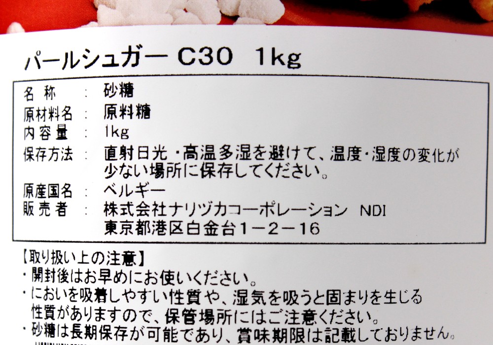ベルギーワッフルなどに練り込んで焼いても溶けてしまわずに粒が残る砂糖です。