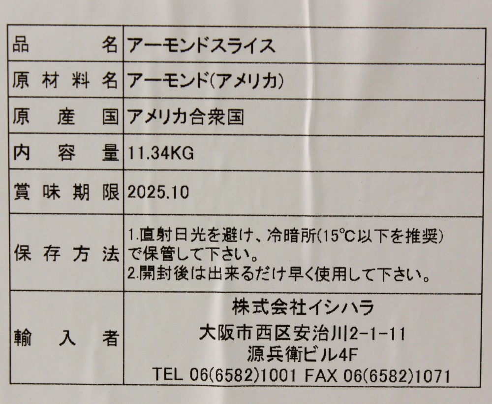 ブルーダイヤモンド アーモンドスライス 11.34kg