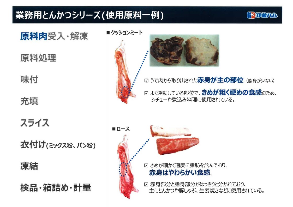 サクサク感のある粗目の焙焼パン粉を使用し、とんかつにおいて重視される衣の食感にこだわった商品。