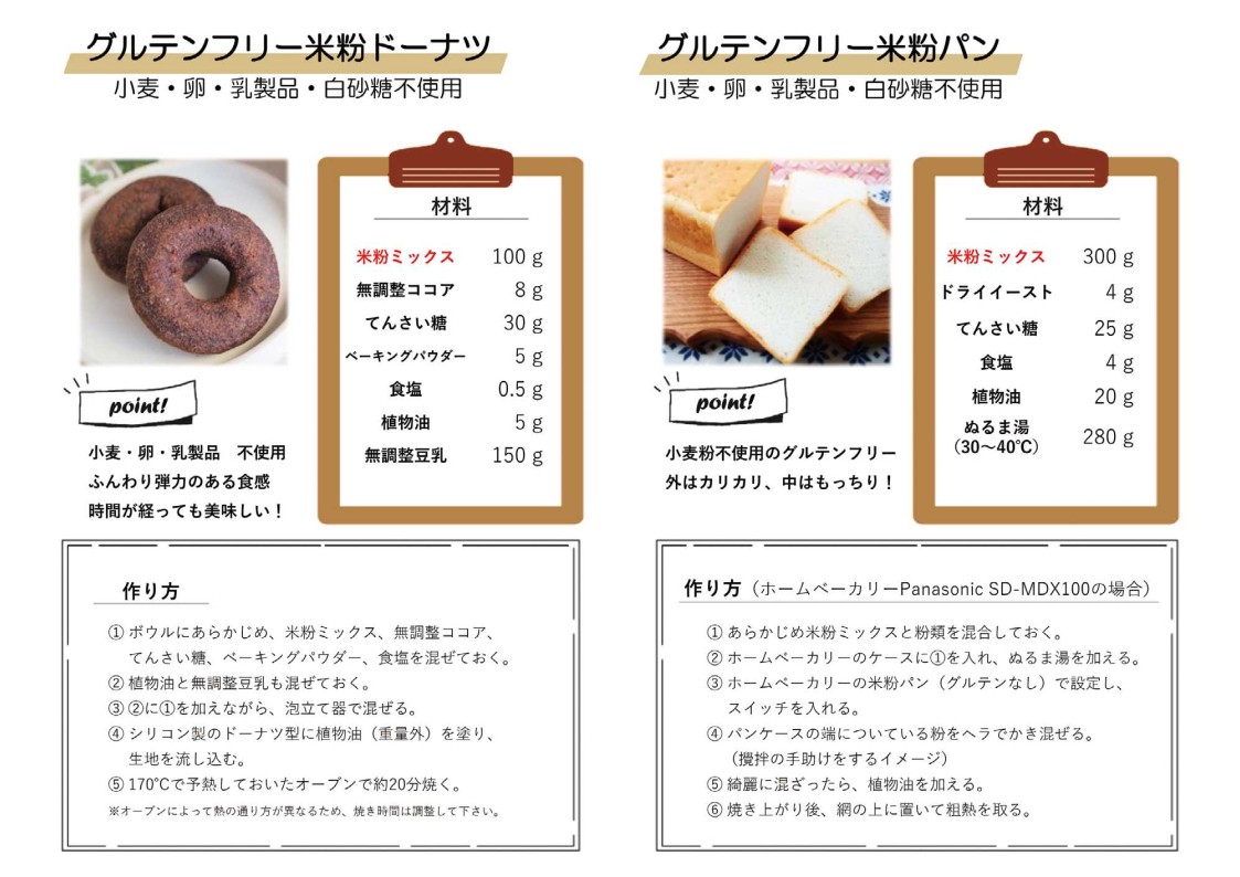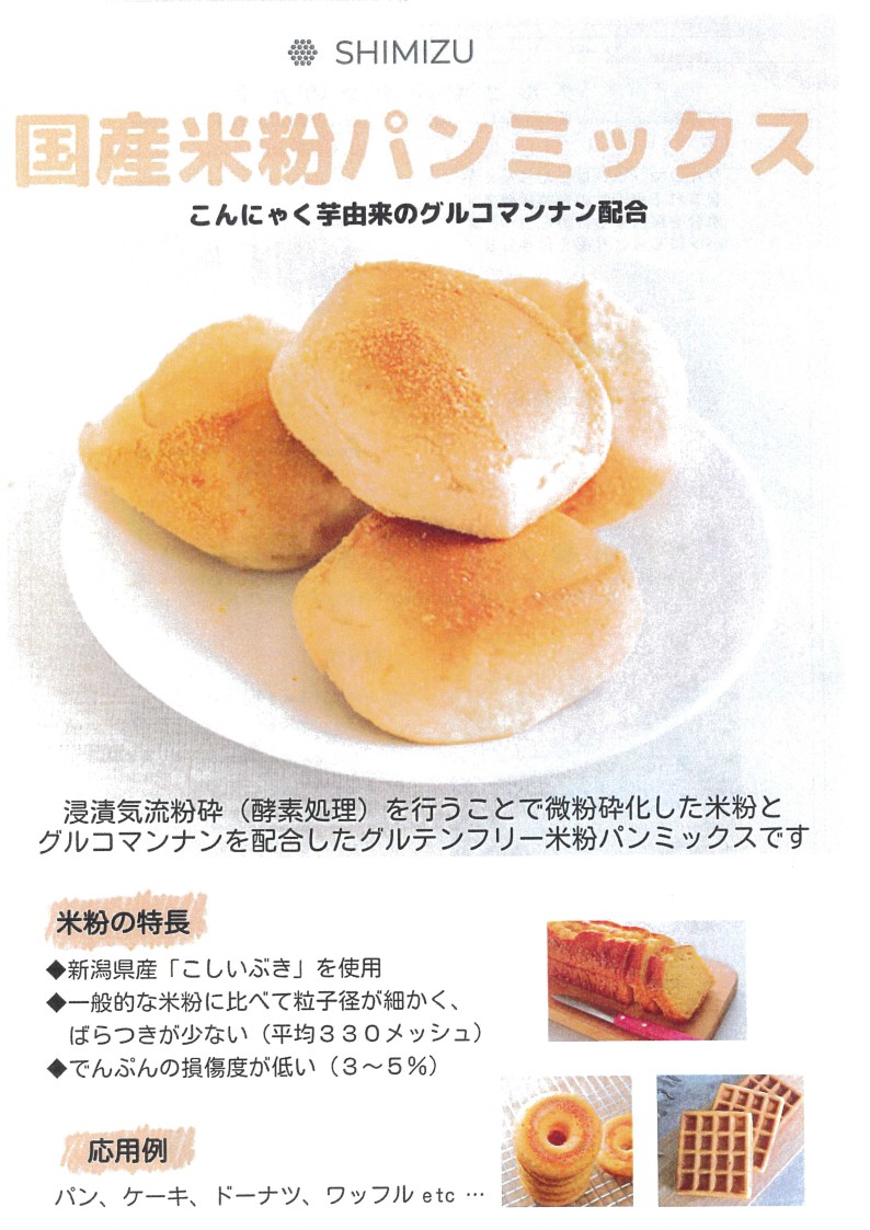グルテン代替品「こんにゃくマンナン」を配合したグルテンフリーの米粉パミックス粉。