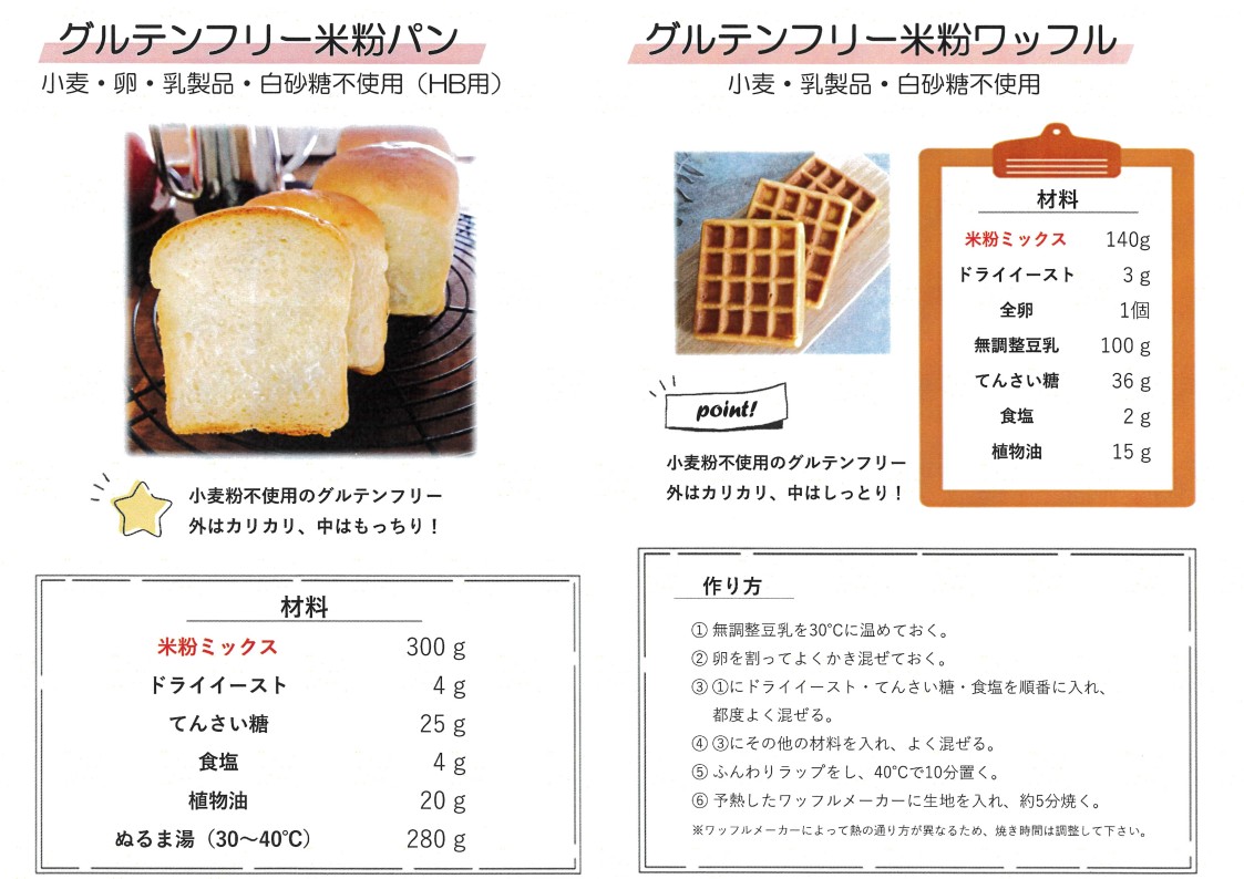 保水性が高く、しっとり感が持続する米粉パン・ケーキ・ドーナツ・ワッフル等が作れます。
