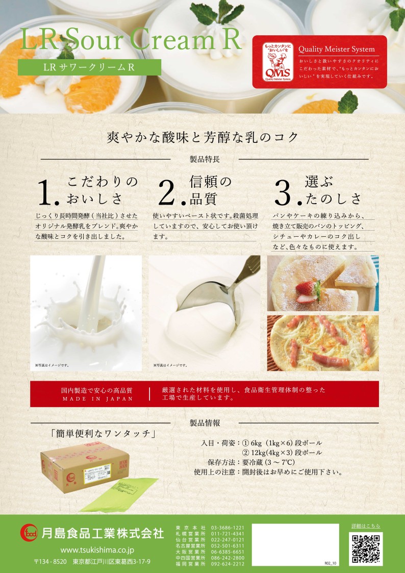 フレッシュで爽やかな酸味、乳のコクとうまみが特長のクリームです。