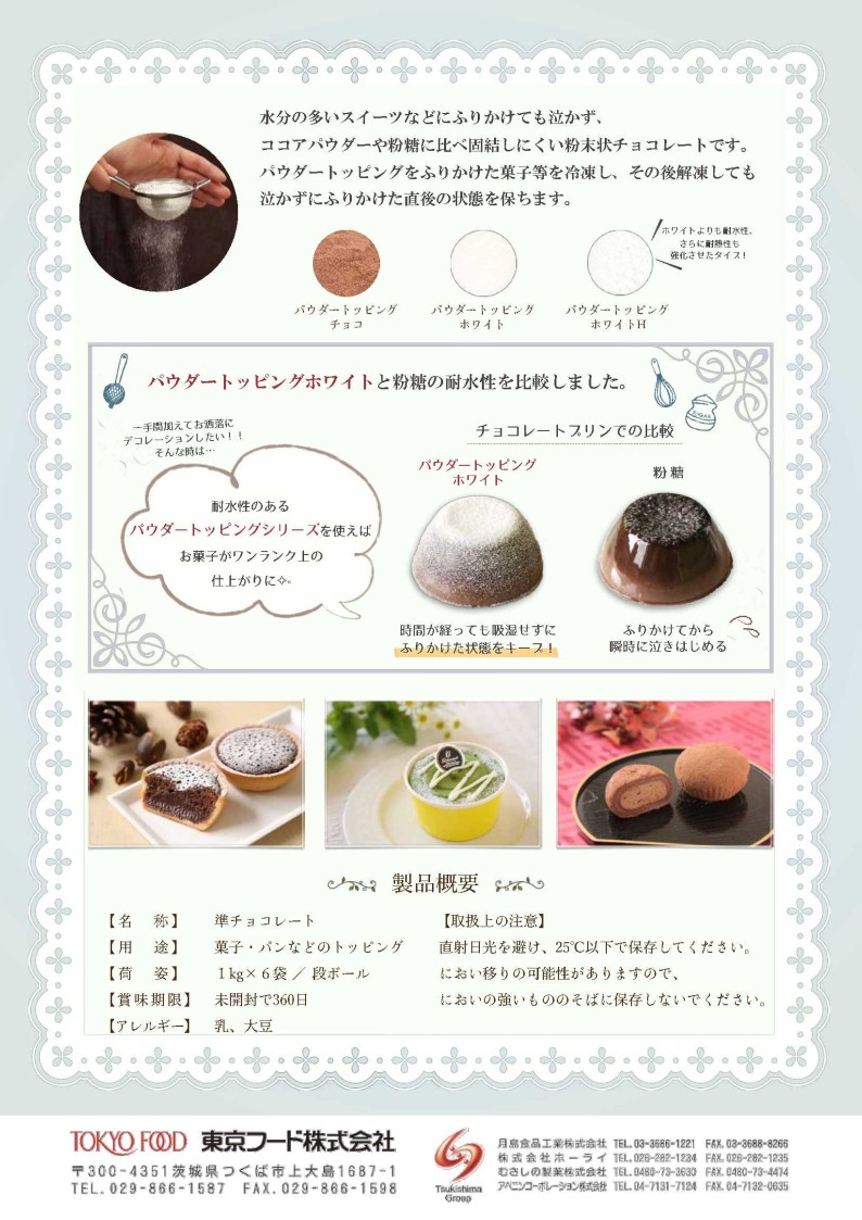保管温度が高くなる場合は「パウダートッピングホワイトH」がお勧めです。