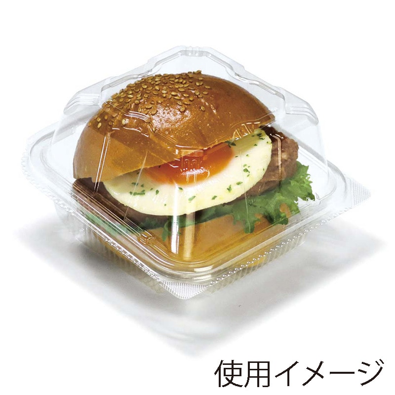 ハンバーガー向けに最適な外嵌合タイプのフードパックです。