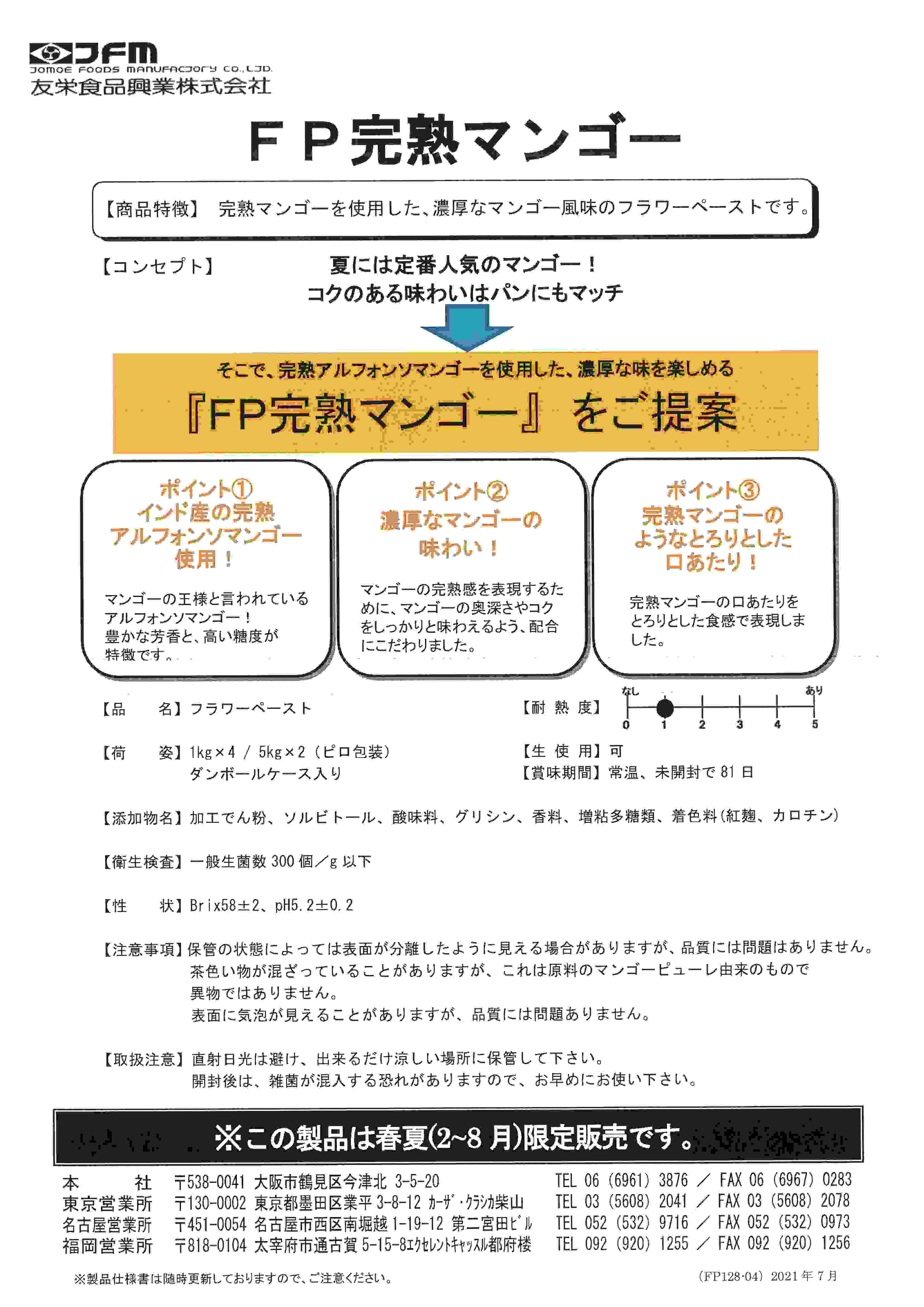 「CF絹芋」は通年販売の商品ですし、レモン・マンゴー・パインは夏向けなので・・・ズバリ!これが春向けでしょう!
