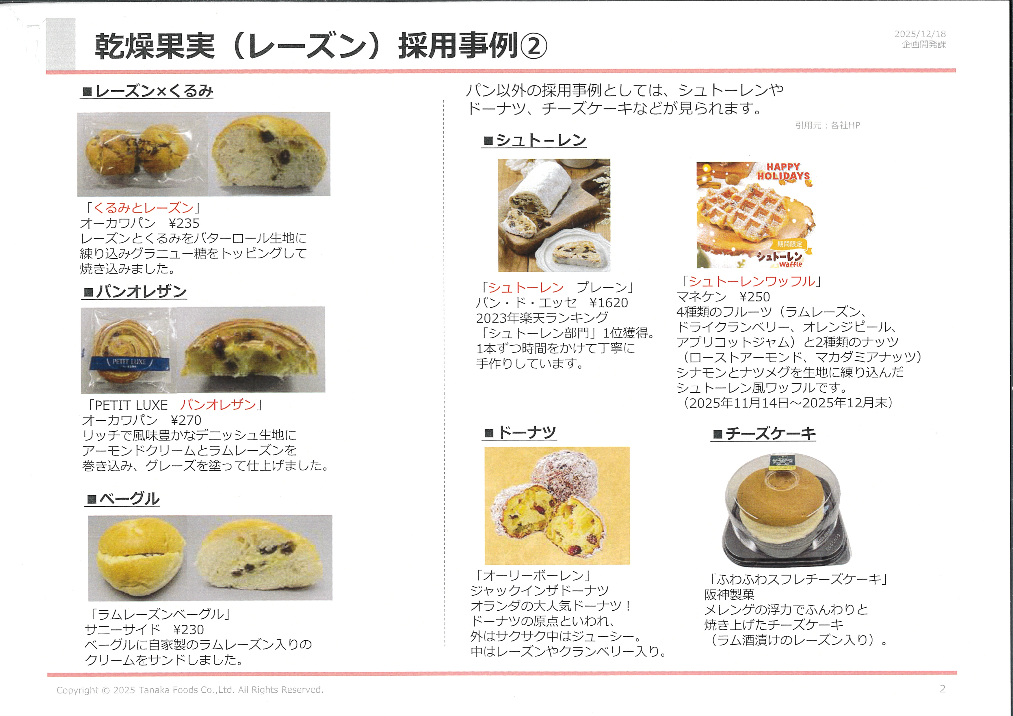 田中食品のレーズンシート(フルーツシート レーズン)や、ラムレーズンクリームなどで使用している原料のレーズンですが、「高品質なレーズンを自社で輸入し、価格メリットがあるので原料のレーズンも売ることにした」とのこと。