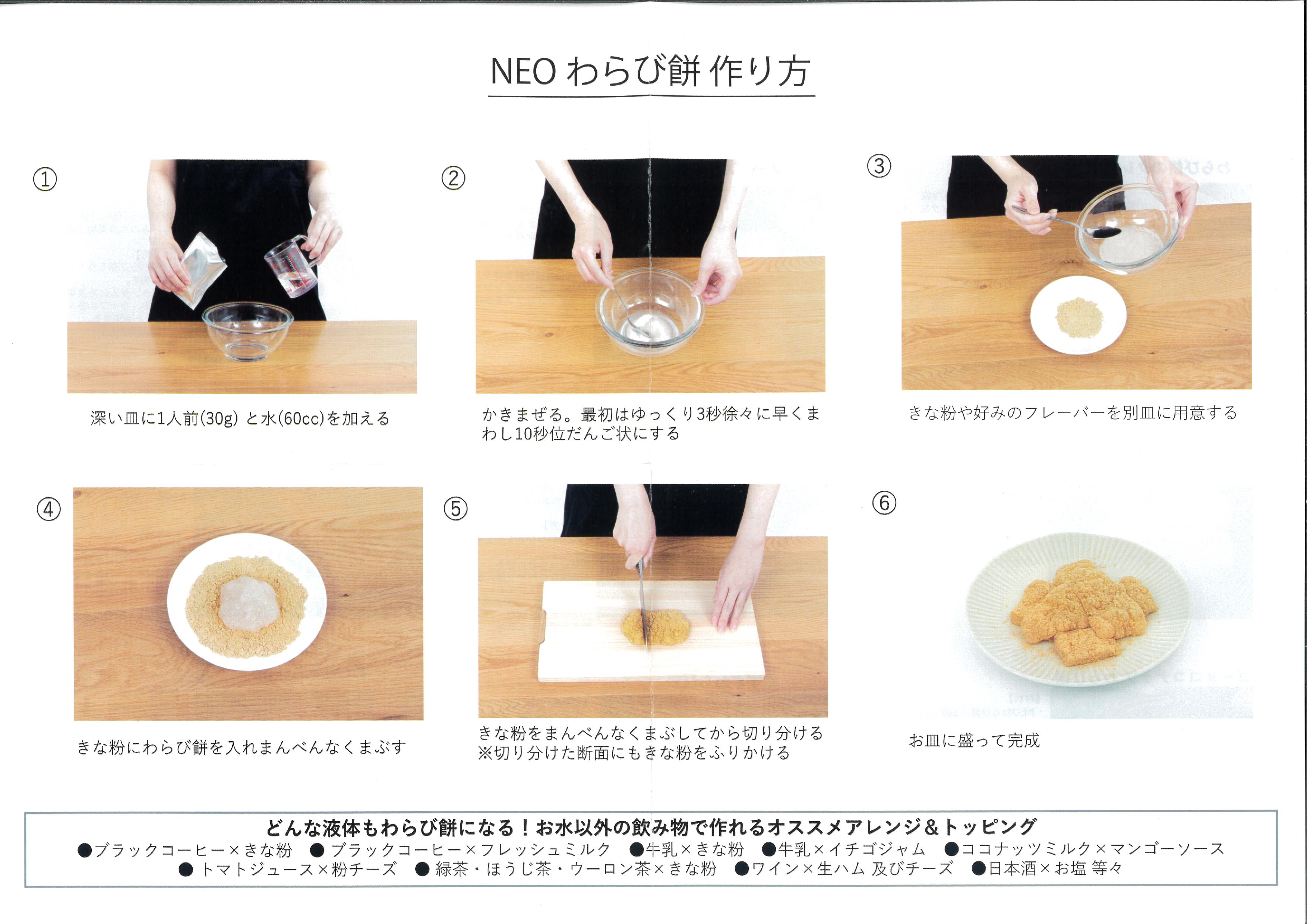 水を入れて混ぜるだけで、もっちもち「わらび餅」ができるパウダーです。