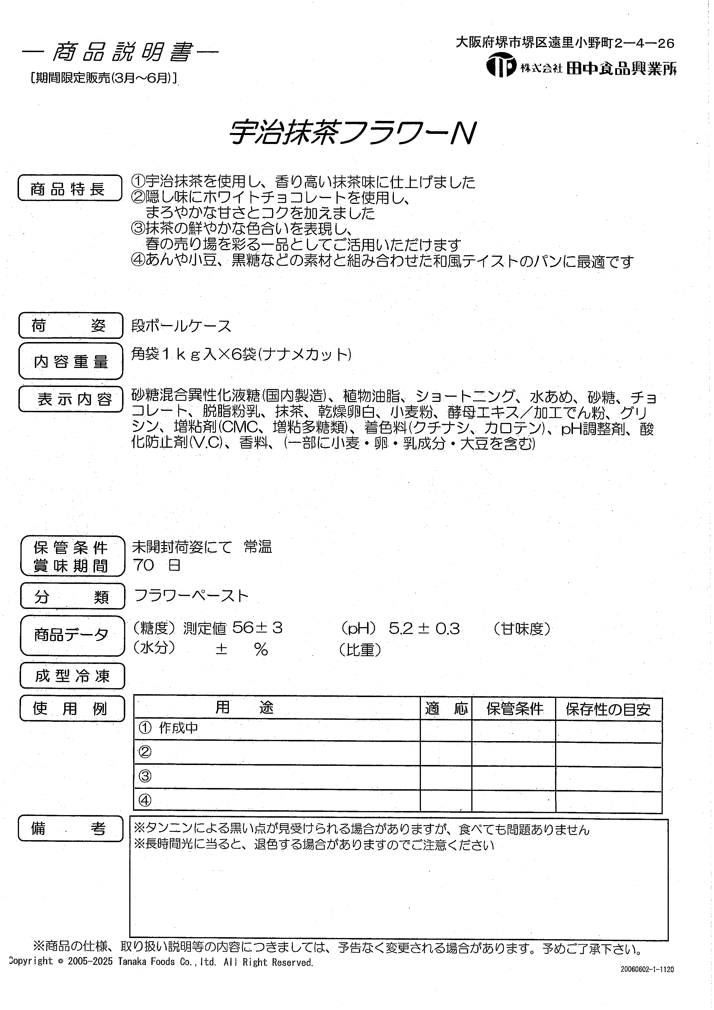 田中 宇治抹茶フラワーN 1Kg