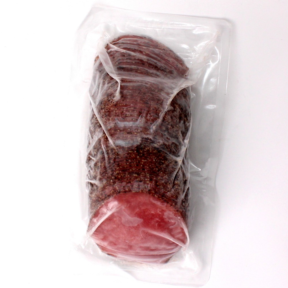 丸型ボンレスハムにブラックペッパーをまぶしています。