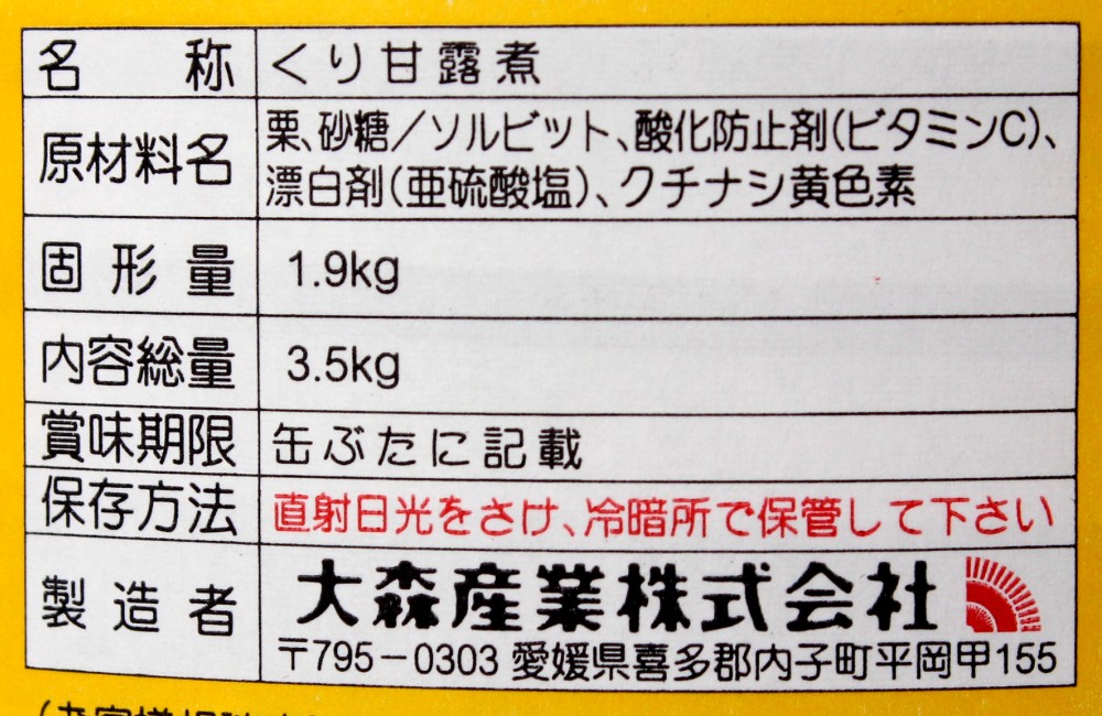 大森 栗甘露煮 3級 ≪2ツ割・韓≫ 1号缶