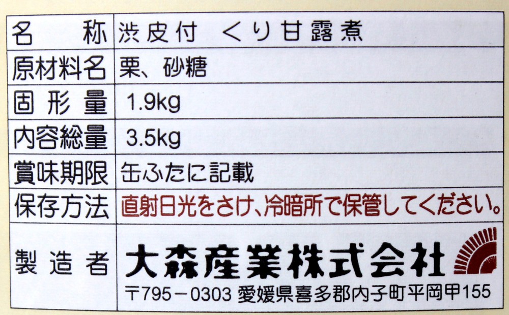 大森 渋皮付栗甘露煮1級≪S≫ 1号缶