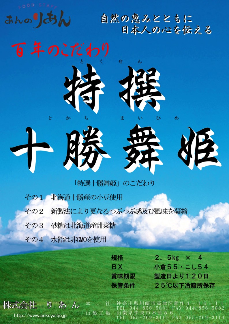北海道十勝産小豆と北海道産甜菜糖を使用し