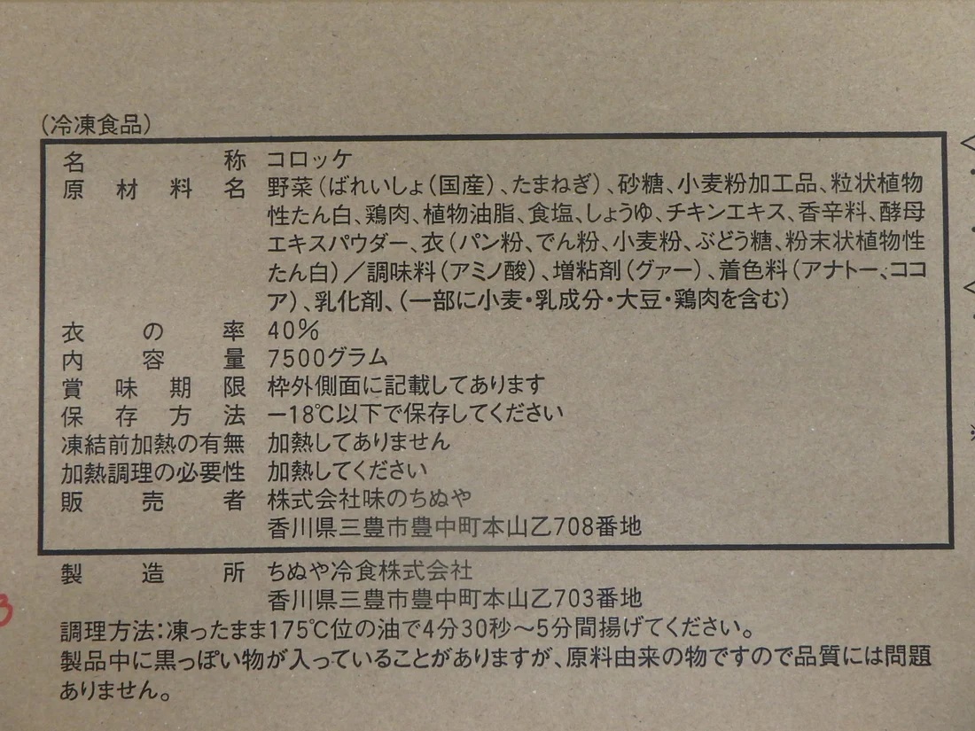 鶏肉入りのちょっと甘めの冷凍コロッケです。1個50g。