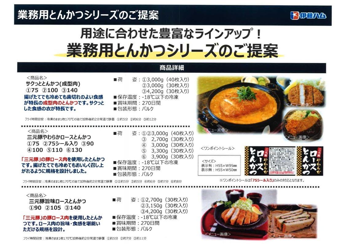 サクサク感のある粗目の焙焼パン粉を使用し、とんかつにおいて重視される衣の食感にこだわった商品。