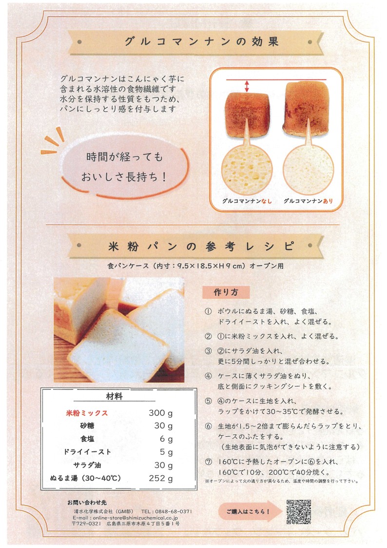 グルテン代替品「こんにゃくマンナン」を配合したグルテンフリーの米粉パミックス粉。