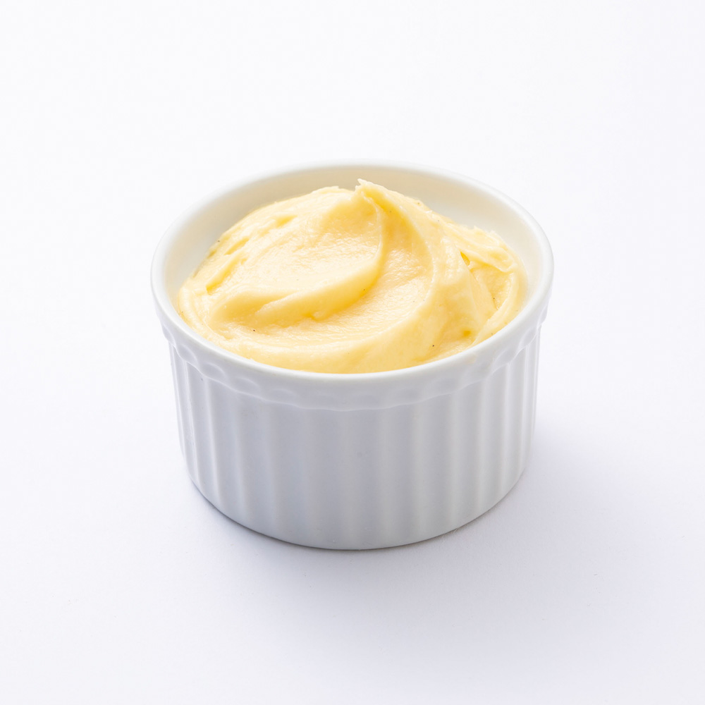 北海道産の牛乳を50%使用し、卵を加えて素材の味を大切に仕上げました。あっさりとした中にもコクを感じる上品な味わい。口溶けが良くなめらかな口当たりで、たっぷり食べても飽きのこないおいしさです。適度な耐熱性をもたせ、焼き込むタイプのスイーツにもご活用いただけます。