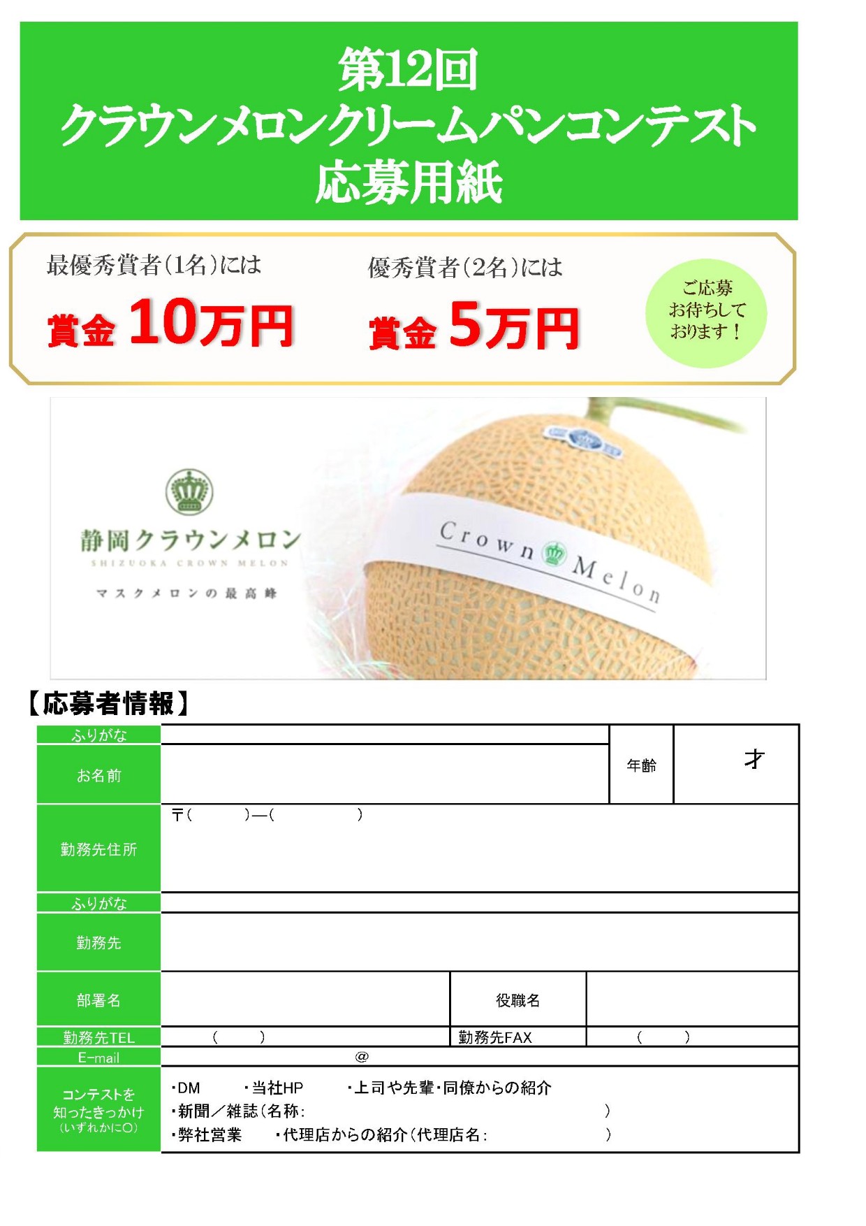 応募の際は、こちらの新着情報の所から応募用紙をダウンロードしてご使用下さい。