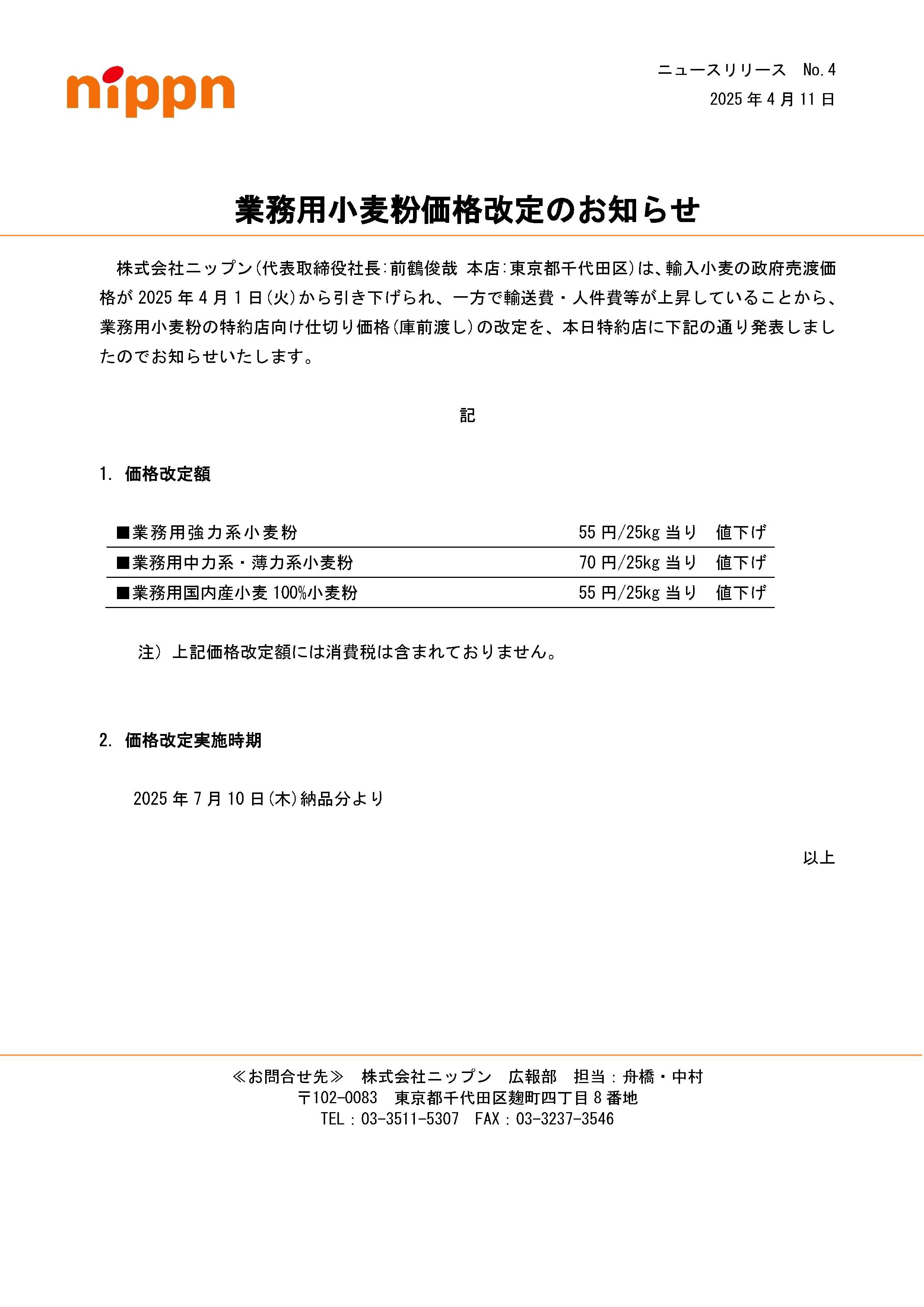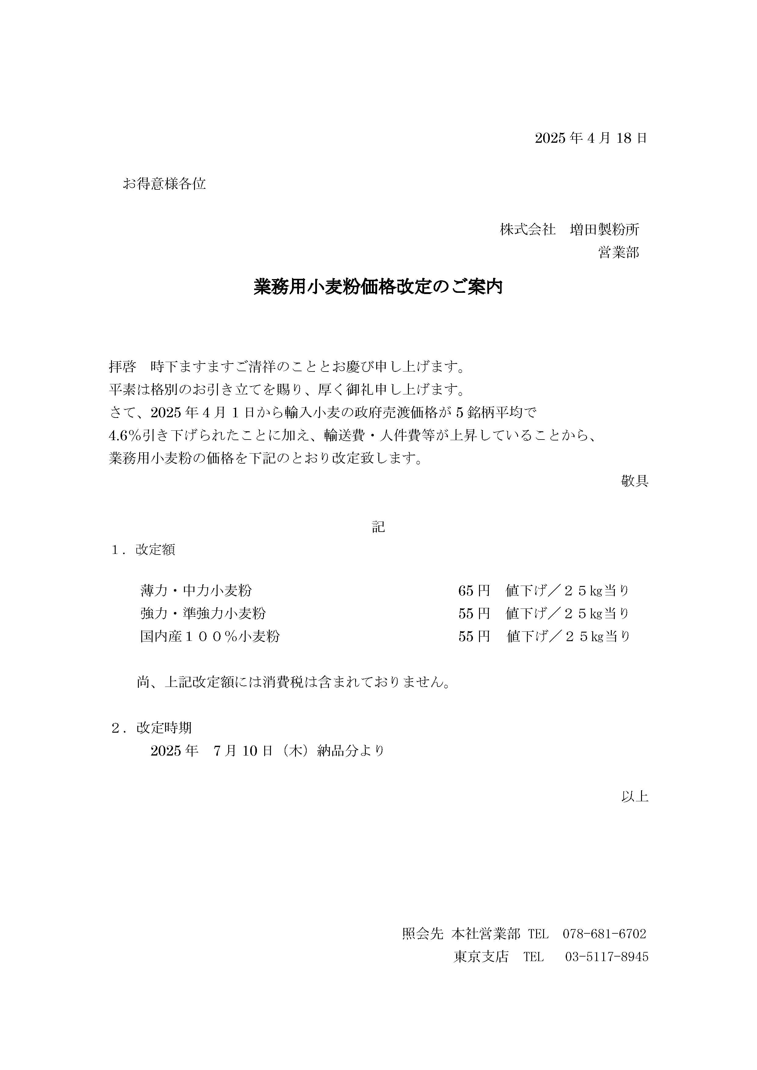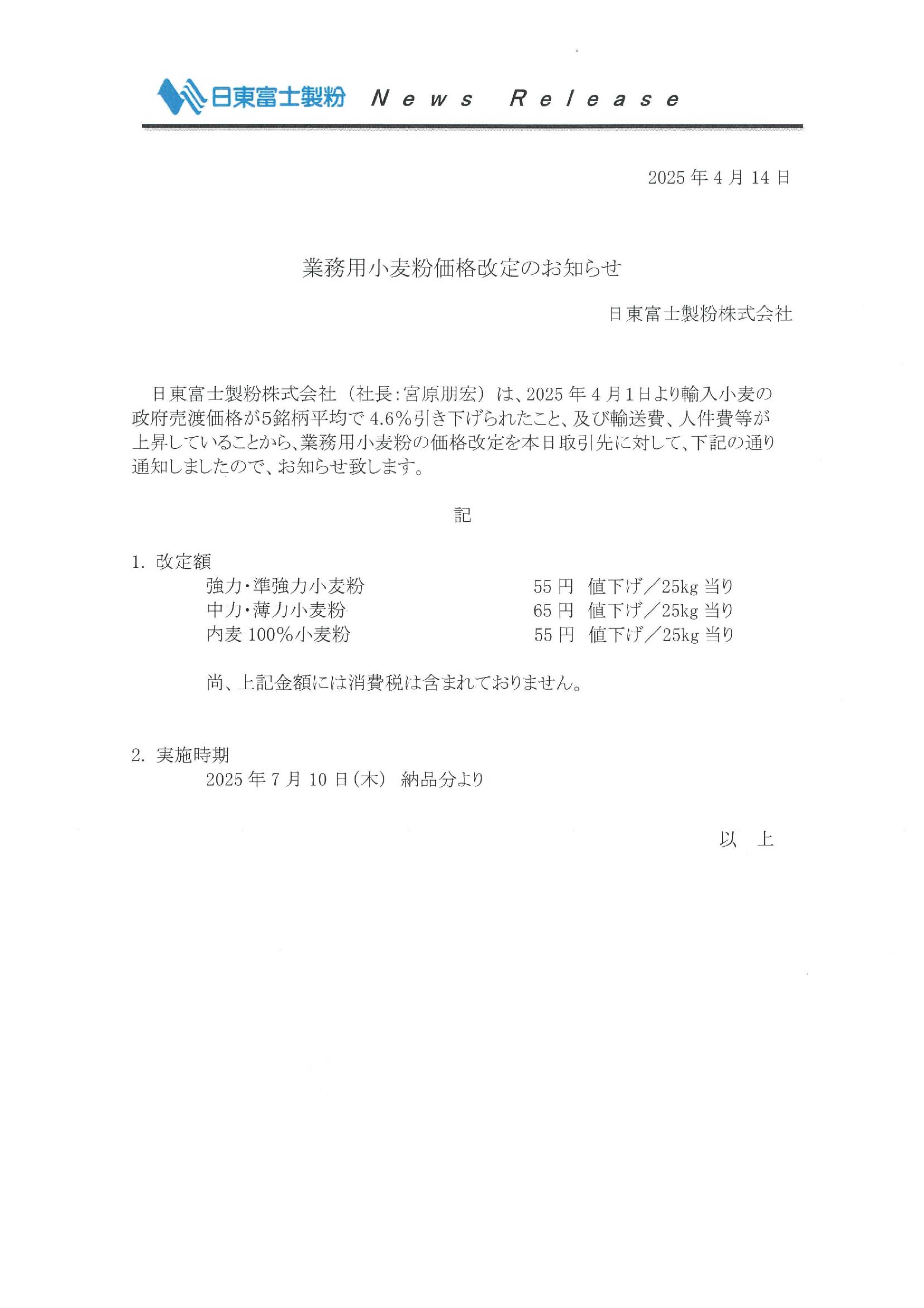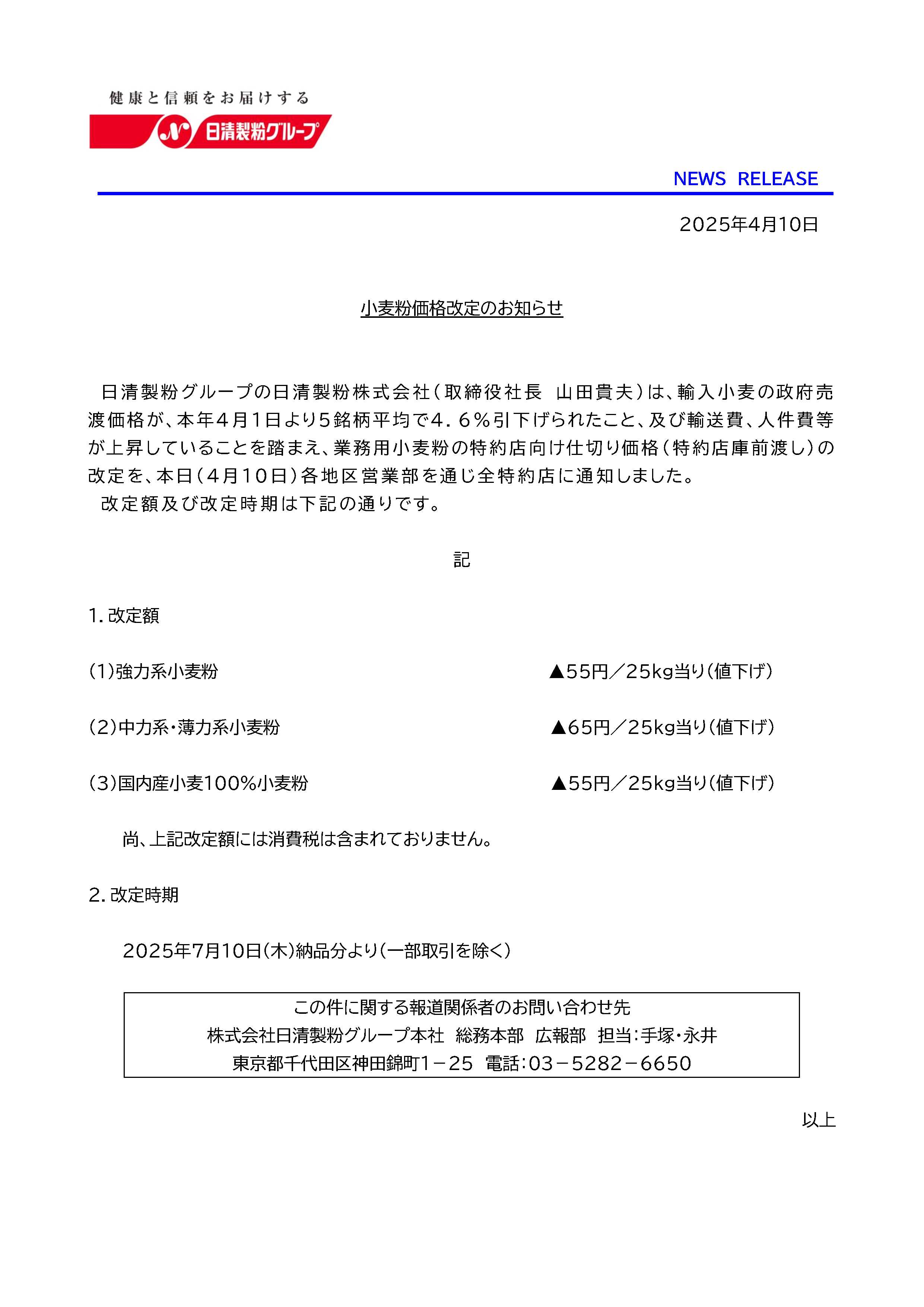 いつも通り、最初に日清製粉から改定額の発表があり(今年は4月10日)、その後、他メーカーの発表が続く予定です。